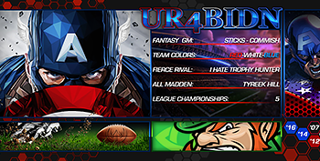 Our websites are shown with standard build mini banners, however we offer rectangle minis and custom sizing mini banners, and anything you can think of. These mini banners really ad the pop to any website, and set your league apart from others. We can design anything you have in mind for your team mini banner for any MFL site.